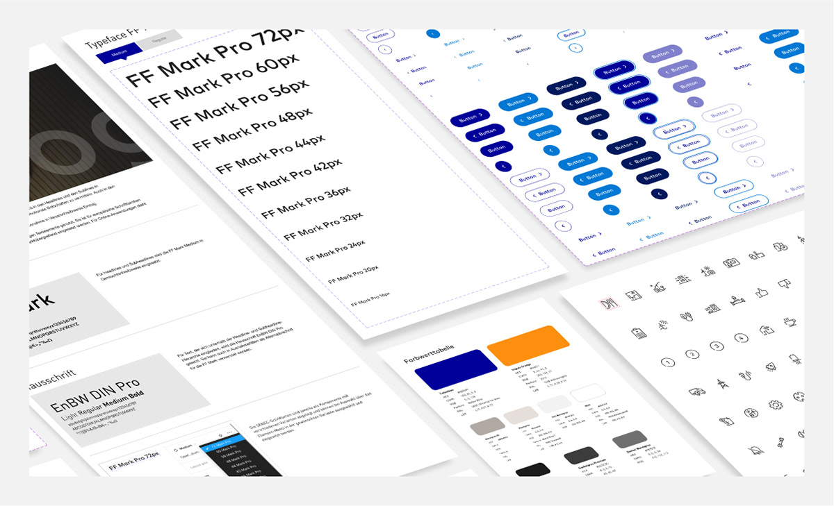 Im Winter 2021 haben wir das Corporate Design in enger Zusammenarbeit mit der EnBW angepasst und einen komplett überarbeiteten Style Guide entwickelt. Unter anderem entwickelte ich hier eine neue Formel für die Größenberechnung des Logos und arbeitete Schutzräume und ein Farbmanagement aus.