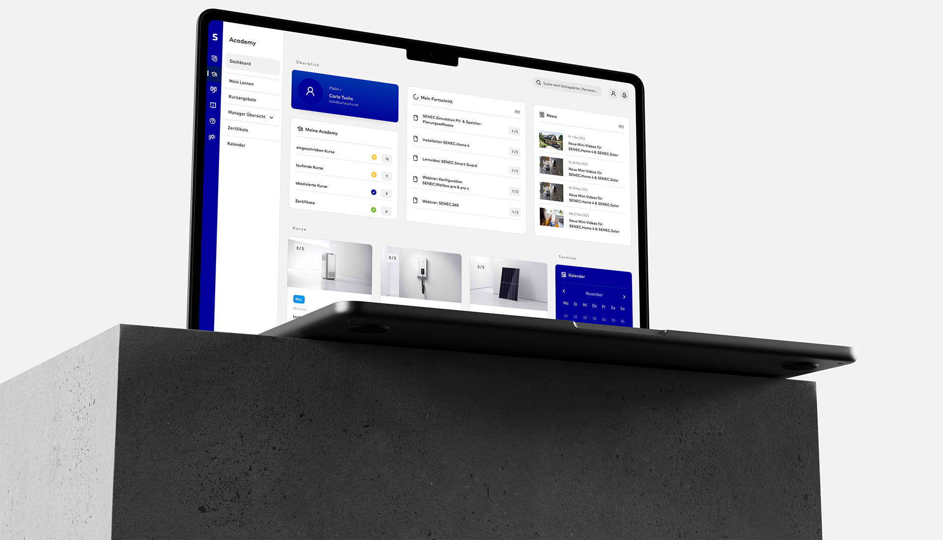 SENEC.Academy ist weit mehr als der digitale Campus der SENEC Produkte. Auf diesem Portal gelangen Fachpartner und deren Mitarbeiter über Informationen, E-Learnings und Webinare zu fundiertem Wissen und zu benötigten Zertifizierungen, die sie als SENEC-Fachpartner auszeichnet.